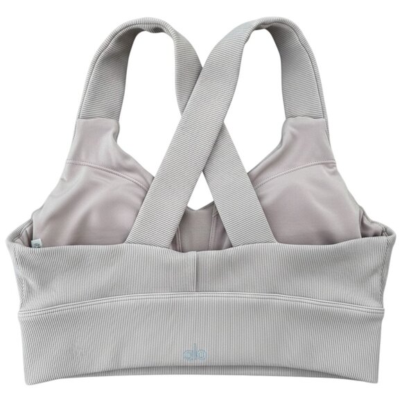 ALO Yoga Emulate Bra Silver Cloud Ribbed Crossback M