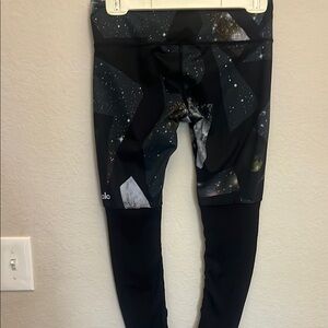 Eye-catching cosmic print leggings. Ideal for yoga or casual outings. Both fabrics are engineered with comfortable 4-way stretch and moisture-wicking and antimicrobial technology, so they work with you through every pose and draw sweat away from the body, where it can readily evaporate—keeping you on your A-game from vinyasa to savasana. The leg warmer-like knit allows for amazing mobility, plus, it's long enough that you can wear it over the heel or scrunched above the ankle.