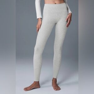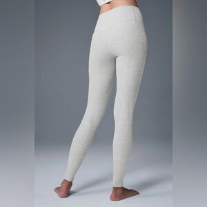 Soft gray heathered top with ALO Yoga branding. Comfortable and stylish.