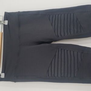 Details: Moto-legging full length. 4-way-stretch. Moisture-wicking odor resistant technology. Hidden key pocket. Engineered to lift, sculpt, contour & smooth. Breathable mesh. Quilted stitching. Mixed matte shine fabric w/ mesh detail.