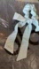 Stylish light blue scrunchie with elegant bow. Perfect for any hairstyle. Soft and durable material.