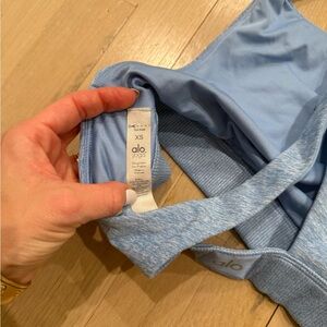 Alosoft Comfortable light blue sports bra. Ideal for yoga and fitness.