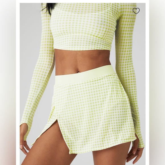 Stylish lime checkered skirt. Features a side slit. Perfect for active wear.