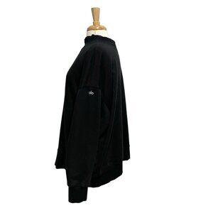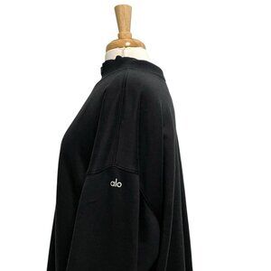 ALO Yoga Mock-Neck Pullover Fleece Sweatshirt Sweater Pockets Black size Large