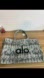 Stylish tote with a bold black logo. Features a unique gray pattern. Perfect for everyday use.