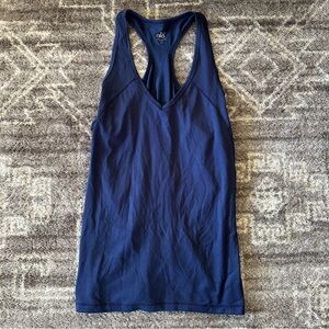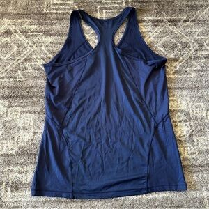 Sleek navy blue tank top. Racerback design. Perfect for workouts.