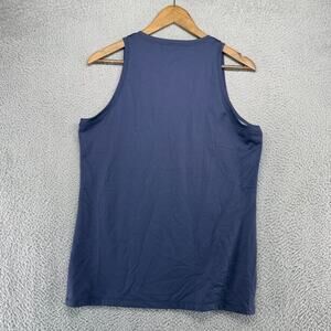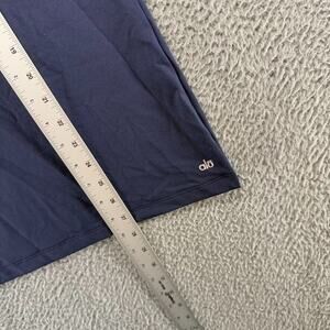 Stylish ALO Yoga tank top. Features navy and light blue colors. Perfect for workouts.