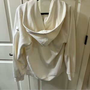 Cream ALO Yoga zip up hoodie. Roomy XL. Only worn once. Looks new but has 2 tiny puckers on one of the arm cuffs. See pic. Minor issue that I only noticed upon close inspection before posting