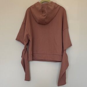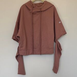 Stylish pink hoodie. Features a cozy hood and long sleeves. Perfect for casual wear.