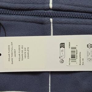 Full zip jacket in bluestone with white accents. Cozy polar fleece material.