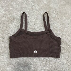 ALO Yoga Ribbed Top | feature inner shelf bra for added support and comfort | brown tone | size small | normal wash/wear and some light piling
