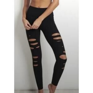 ALO Yoga Womens Ripped Warrior High Waist Leggings Pants XS Black Gym Workout