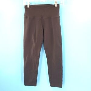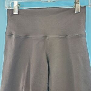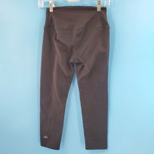Alo Yoga black 3/4 length leggings, cropped, waist measures 12.5" across, rise is 10", inseam is 21", good used condition no holes or stains bur there is some wash wear, size small