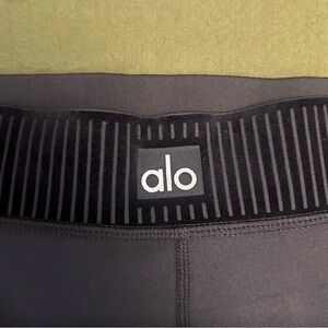 These ALO Yoga leggings feature a wide ribbed waistband that provides both comfort and support. Made from a stretchy athletic fabric, they are perfect for workouts or yoga sessions. The solid black color adds a sleek and versatile touch to your activewear collection.