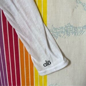 ALO yoga white long sleeve shirt sheer ribbed work print top