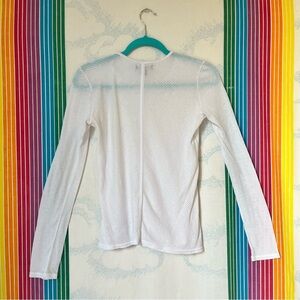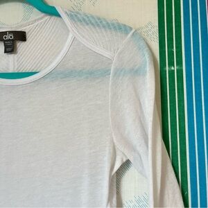 ALO yoga white long sleeve shirt sheer ribbed work print top small
