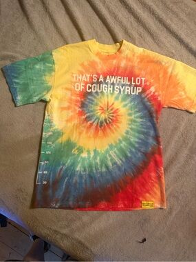 Vibrant multicolor tie-dye short sleeve tee with bold front graphic alocs