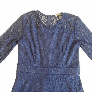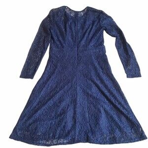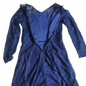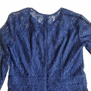 AL'OFA Navy Blue Lace Long Sleeve A-Line Dress sz S