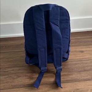 Used twice. Color is a bluish/purple. Easy to clean. Measures 12" wide (across the bottom of the bag), 5.5" deep, 16.5" tall. Includes laptop sleeve inside. Has trolley sleeve for travel. Smoke free home.