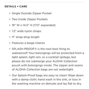 Brand new authentic ALOHA Collection Day Tripper tote bag, never used. Print: areca. Color: tide on sandstone