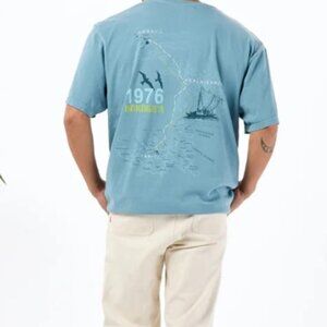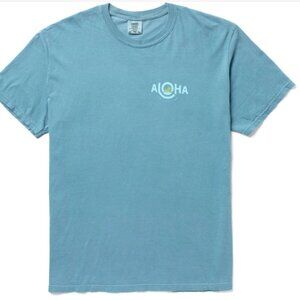 Style: Unisex men's shirt. Small Aloha pocket print and back of shirt map
