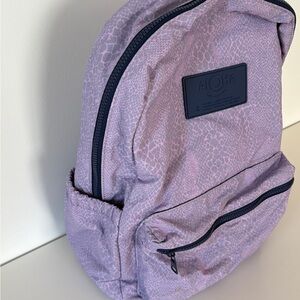 Chic lavender backpack with python design. Features front zip pocket and spacious interior. Ideal for daily adventures.