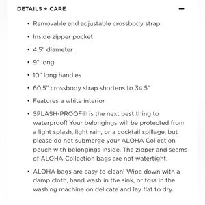 ALOHA bags are easy to clean! Wipe down with a damp cloth, hand wash in the sink, or toss in the washing machine on delicate and lay flat to dry.