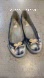 Trimmed in navy blue fabric with a faux patent leather blue heel back.