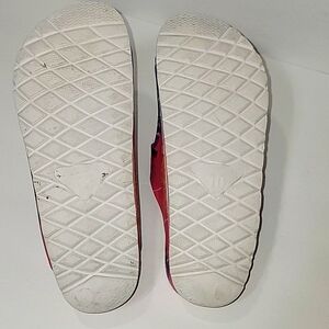 Super cute sandals by ALOHA ISLAND, these cheerful little smiles for your feet are lightweight and waterproof, adjustable with double straps and plastic buckles.  These very clean, gently pre-loved shoes have no flaws and are a woman's size 10.