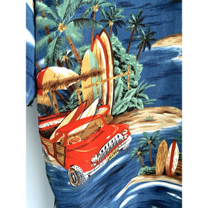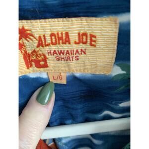ALOHA JOE Hawaiian Shirt Surf Boards Aloha Tiki Vtg Mens Large LG Sh Sleeve Blue