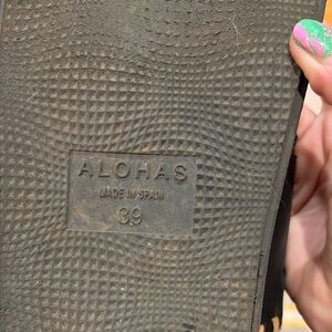 Stylish sandals with black base and tan braided straps. Perfect for casual wear. Velcro top straps.