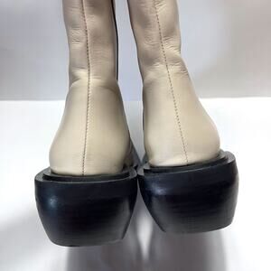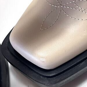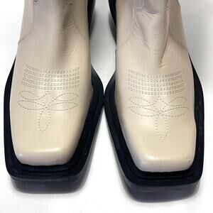 ALOHAS Cattle Cowboy Leather Squre Toe Tall Boots in Ivory Size 7-7.5