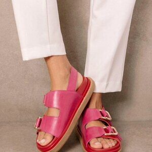 ALOHAS Harper Leather Slingback Buckled Sandal In Red Magenta, Size 39