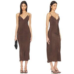 ALOHAS Island Midi Slip Dress in Brown Cupro Cami Camisole Small S