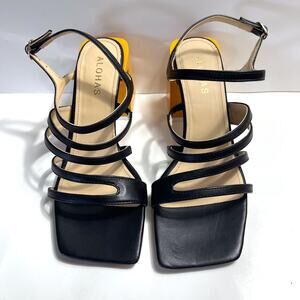 ALOHAS NWOT Aubrey Strappy Yellow Block Heel Square Toe Sandal Size 37/6.5