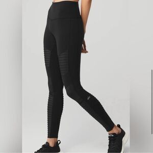 ALO High Waist Mixed Moto Faux Leather Mesh Legging Black
