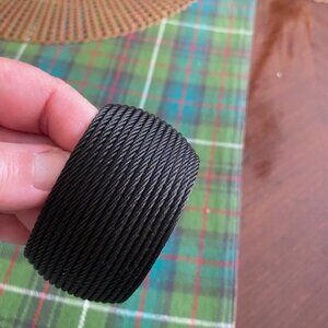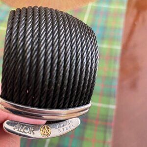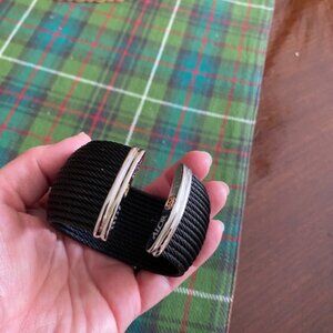 Stunning, pre-loved Alor designer black 18 row stainless steel and 18K gold black cable cuff bracelet. This 1 1/2 inch wide beauty can be worn with the endcaps facing up or not - your preference! All photos are of the actual bracelet for sale except the ones on the models to show you scale. Original box not included, but will ship in a beautiful jewellery pouch. Excellent condition and super comfortable to wear and easy to put on. Enjoy!