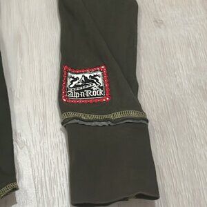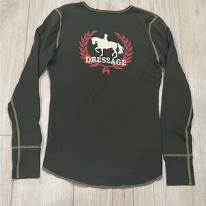 Has embroidered horse and shield patch in front and horse and rider on the back