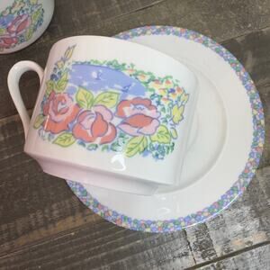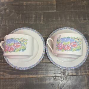 These vintage pieces showcase intricate detailing and a timeless design. The floral and water scene is beautifully rendered, creating a serene and sophisticated aesthetic. The large size of the cups makes them ideal for enjoying your favorite hot beverages.