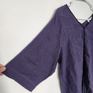 ALPHA STUDIO Linen Top M/L Purple Cottage Minimalist Beach Coastal Grandma