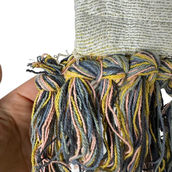 Adorable pastel alphabet banner in cream white and pastel colors with a tassel trim. The end tassel has come undone slightly as shown,