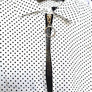 ALPHABET ZIPPER TOP S Fashion Jeans Polka Dot Blouse Sheer Spring Teachercore