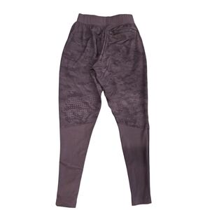 Pre-owned. Very good condition. Purple camo print. Drawstring waist. Infinity patch in waistband. 2 front zipper pockets. 1 back zipper pocket. Mesh in the back of the legs for air flow. Size X-Small.
