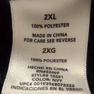 ALPINE SHERPA, FLEECE PULLOVER, OVERSIZED, PRETTY LAYER PIECE, SUPER COZY, DARK BLUE & BLACK, PATTERNED, VERY SOFT INSIDE AND OUT, PERFECT SNUGGLY FOR THE COLD SEASON,SIDE POCKETS, 8 1/2 INCHE FRONT ZIPPER AT NECK UP COLLAR, NECK SIZE 22 INCHES, WOMEN'S SIZE 2XL(XXL)