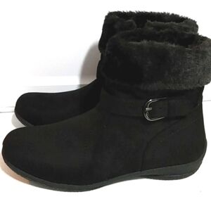 ALPINE WOODS Black Fur Lined Ankle Boots Side Zipper Closure with Exterior Buckle Size 6 NWT