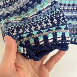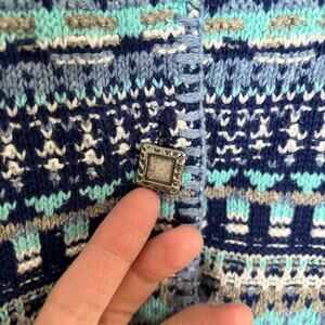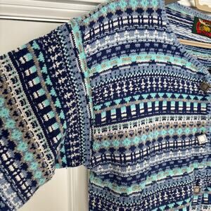 ALPS Fine Womens Apparel Blue Stripe Cardigan Sweater Fair Isle Nordic Cotton