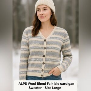 ALPS Wool Blend Fair Isle Style Cardigan Sweater – Size Large