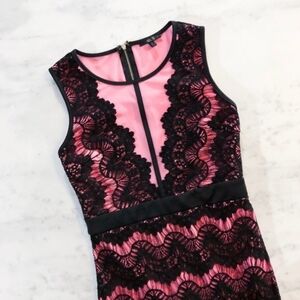 ALT B ✦ Pink & Black Lace Bodycon Dress ✦ Sheer Bust Panel Party Sz S EUC