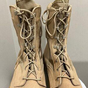 Durable, tactical, and built for 'the mission'. These Altama Combat Boots in size 12XW deliver rugged functionality with military-grade design. Featuring tan suede uppers, breathable side mesh panels, lace-up style with reinforced ankle support, padded collars, and heavy-duty Vibram soles. They’re perfect for outdoor use, tactical fashion, utility work, hunting and costume design!. NWOB. Size 12 XW.