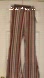 Vertical printed stripes in colors of red, blue and orange on a off white background.